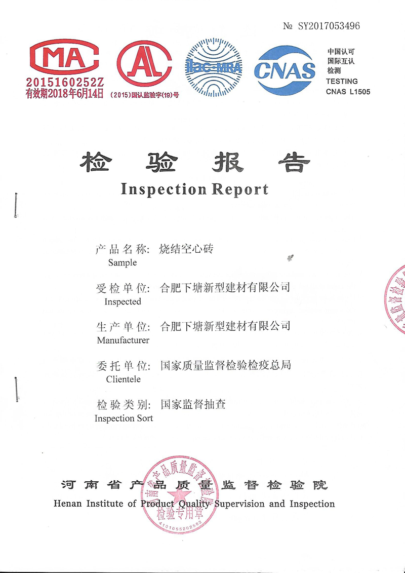 本公司是生產(chǎn)銷售燒結(jié)煤矸石空心磚,多孔磚、燒結(jié)保溫砌塊的新型墻材企業(yè),位于合肥長豐縣下塘鎮(zhèn)錢集社區(qū)。我廠始建于1992年,占地300畝,現(xiàn)有員工55人,2011年響應國家發(fā)展新型墻材,實現(xiàn)節(jié)能減排,有效保護耕地,推廣資源綜合利用政策,公司建設了合肥市首批煤矸石磚生產(chǎn)線,開發(fā)使用煤矸石(工業(yè)廢渣)生產(chǎn)燒結(jié)空心磚制品。此舉受到主管部門的大力贊許與支持,產(chǎn)品全部通過國家質(zhì)量檢測部門檢測并榮獲上級部門授予的“安徽省新型墻材證書”“綠色建材產(chǎn)品”等證書。產(chǎn)品一直暢銷周邊市場,與多家開發(fā)、建筑單位簽定長期供銷合同,質(zhì)量與售后服務受到用戶一致好評。